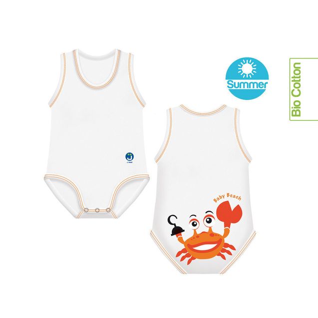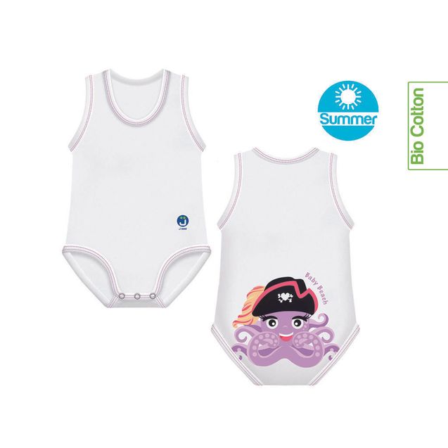 In cerca di body estivi neonato con fantasie divertenti? J BIMBI ti porta alla scoperta del curioso ed affascinante mondo marino con i body neonato smanicati della Beach Collection.