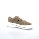 Scarpa donna tipo sneakers predisposta al plantare. Tomaia traforata con inserti gioiello motivo APE.